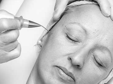 The Plasma device produces a tiny, so-called plasmatic flash at its tip. This flash leaps from the tip to the skin, creating a micro-millimetre-sized point that superficially evaporates skin in that area.